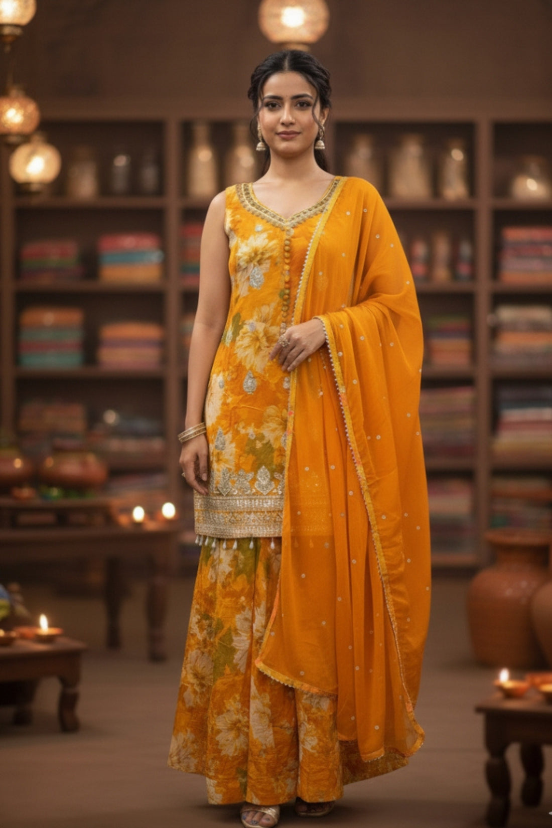 Mustard Yellow Designer Palazzo Set with Luxe Detailing