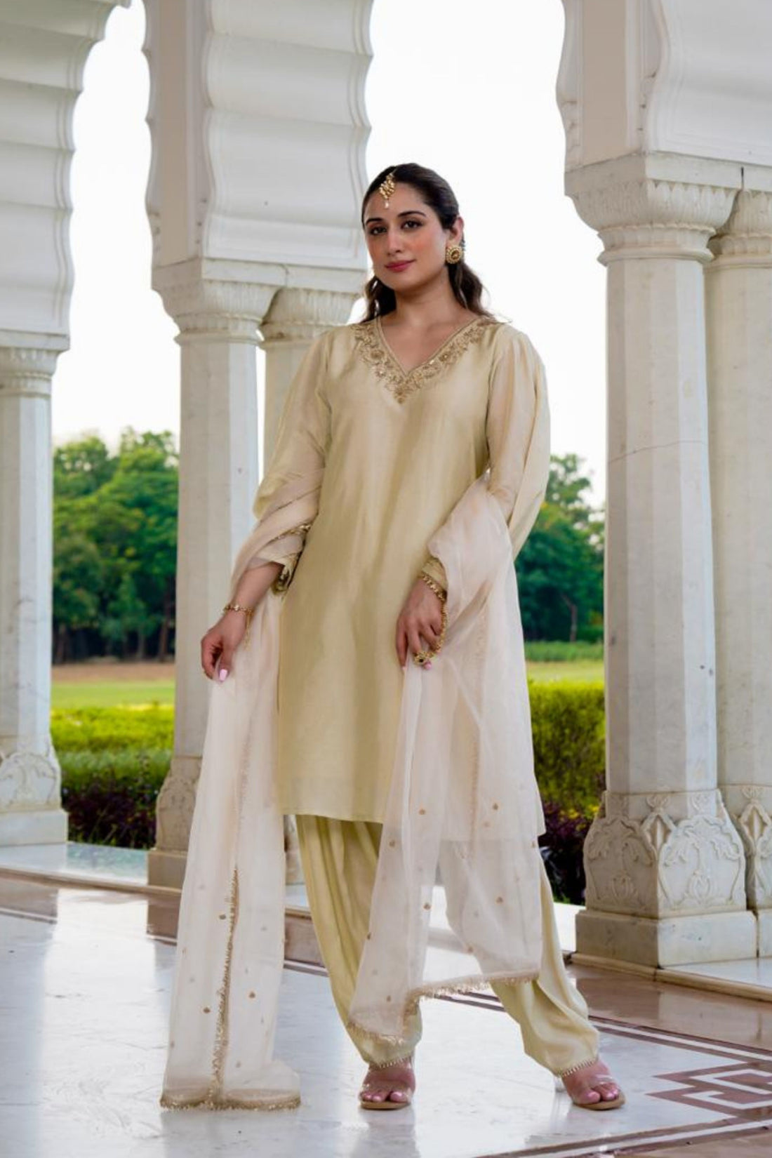 Golden Festive Silk 3-Piece Suit Set