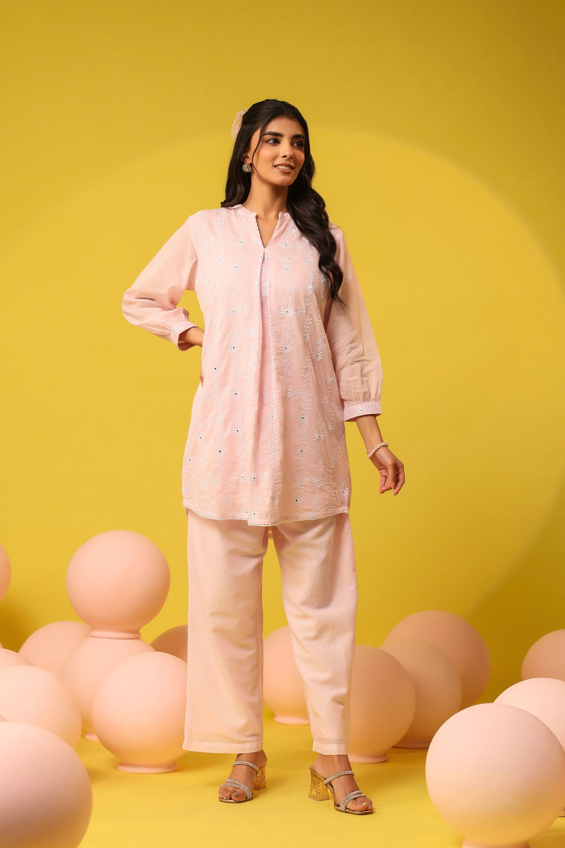 Light Pink Embroidered Mul Mul Cotton Co-ord Set
