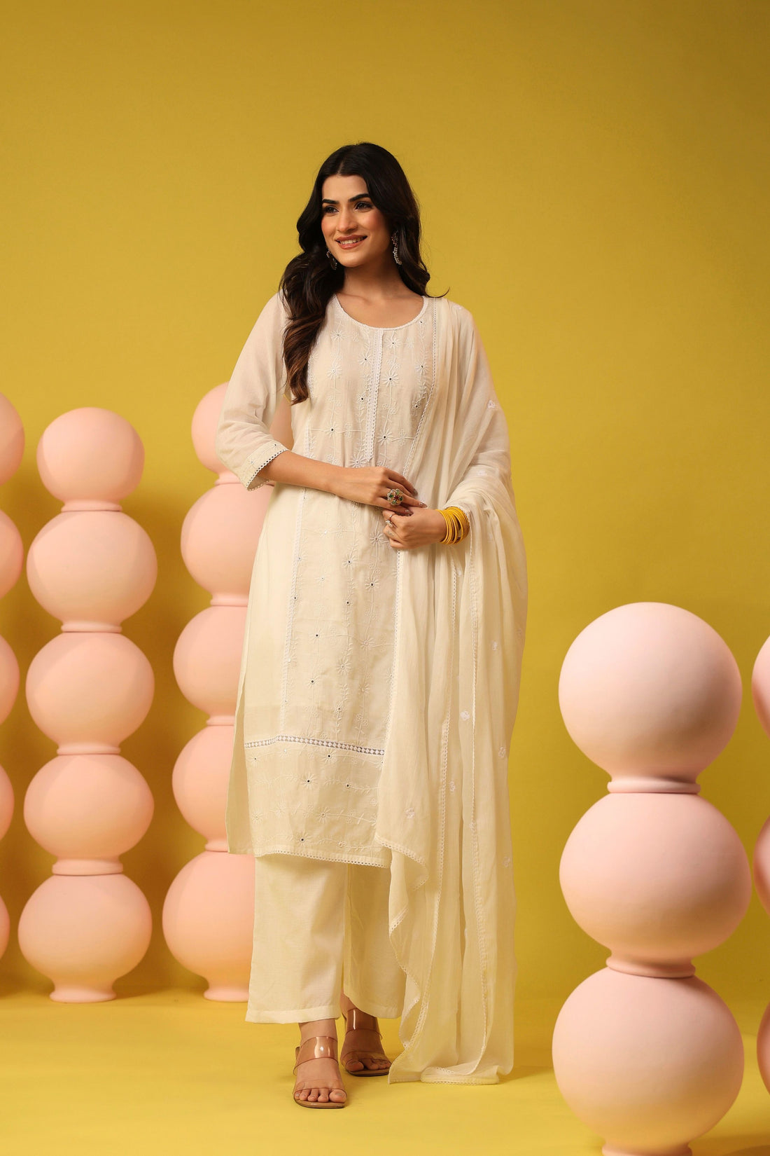 White Bloom Chikankari Suit Set
