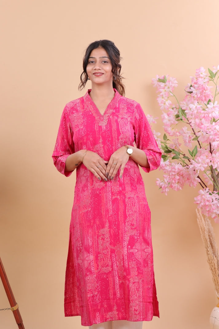 Step into effortless elegance with our Magenta Muslin Long Kurta, designed for women who love...