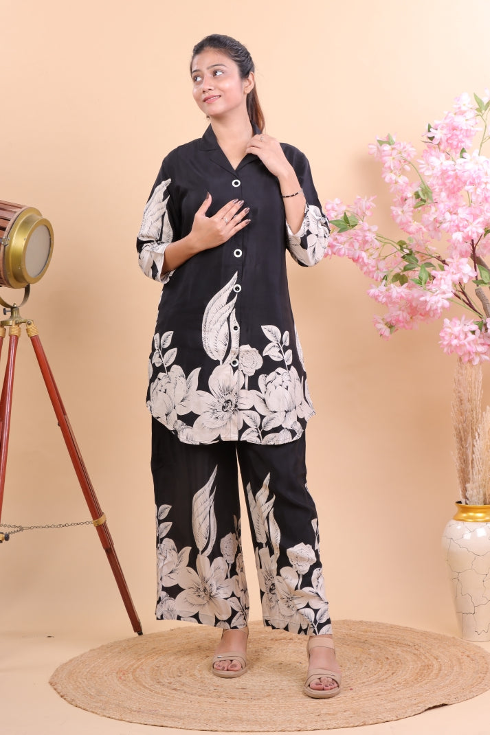 Step into effortless elegance with our Black & White Floral Printed Co-ord Set, crafted in...