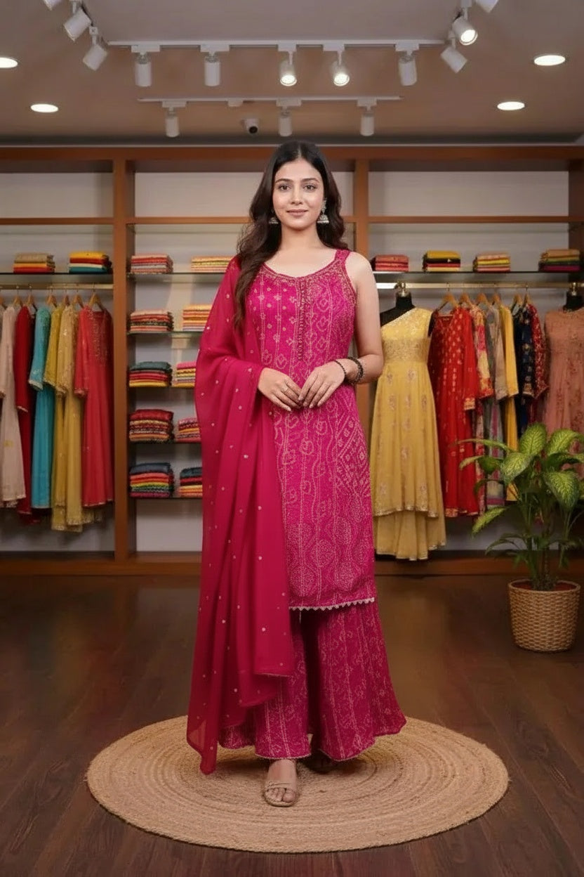 Timeless Magenta Bandhani Print Sharara Set with Dupatta