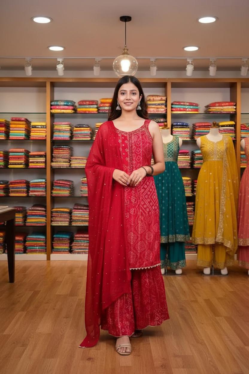 Timeless Red Bandhani Print Sharara Set with Dupatta