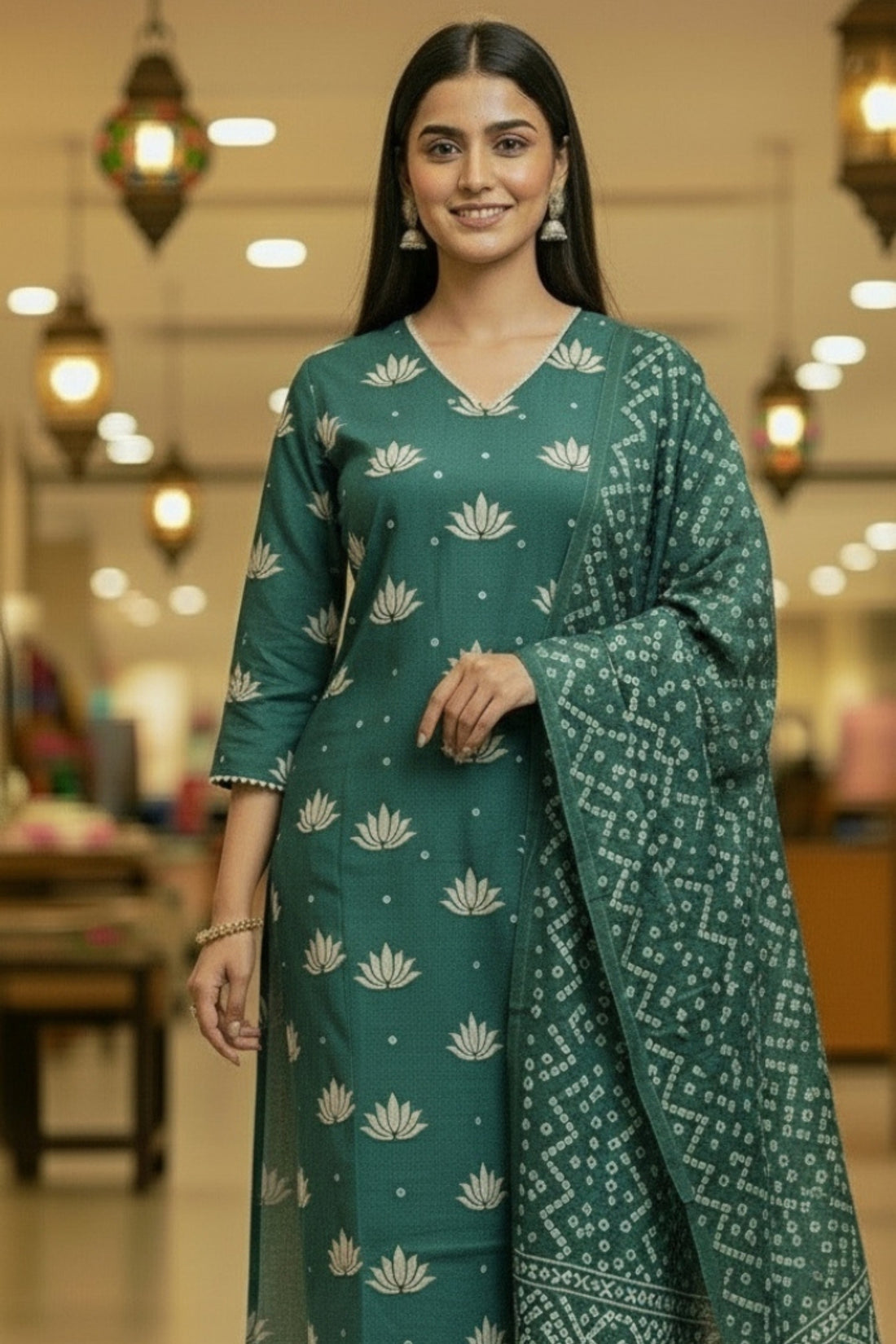 Premium Cotton Rust Suit with Traditional Embroidery & Bandhani Print Dupatta