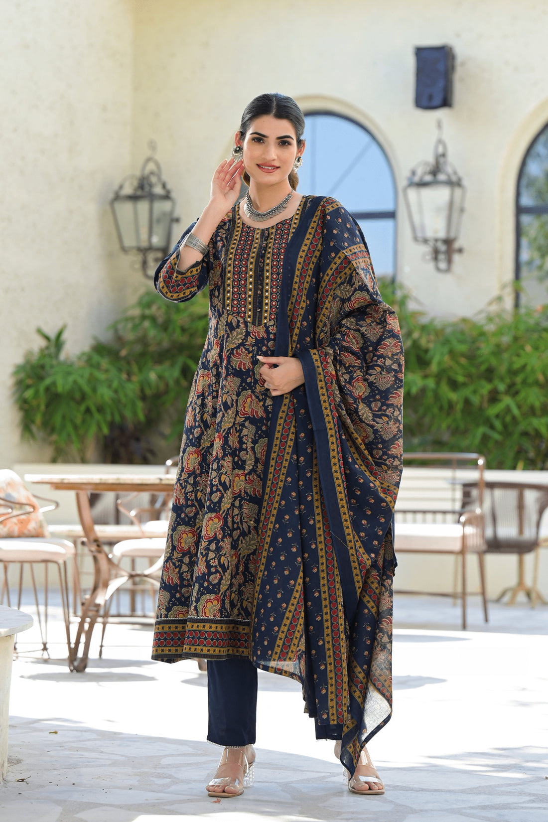 Embrace a delicate and charming look with our Ivory Bloom Printed Anarkali Suit Set. This...