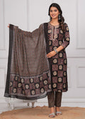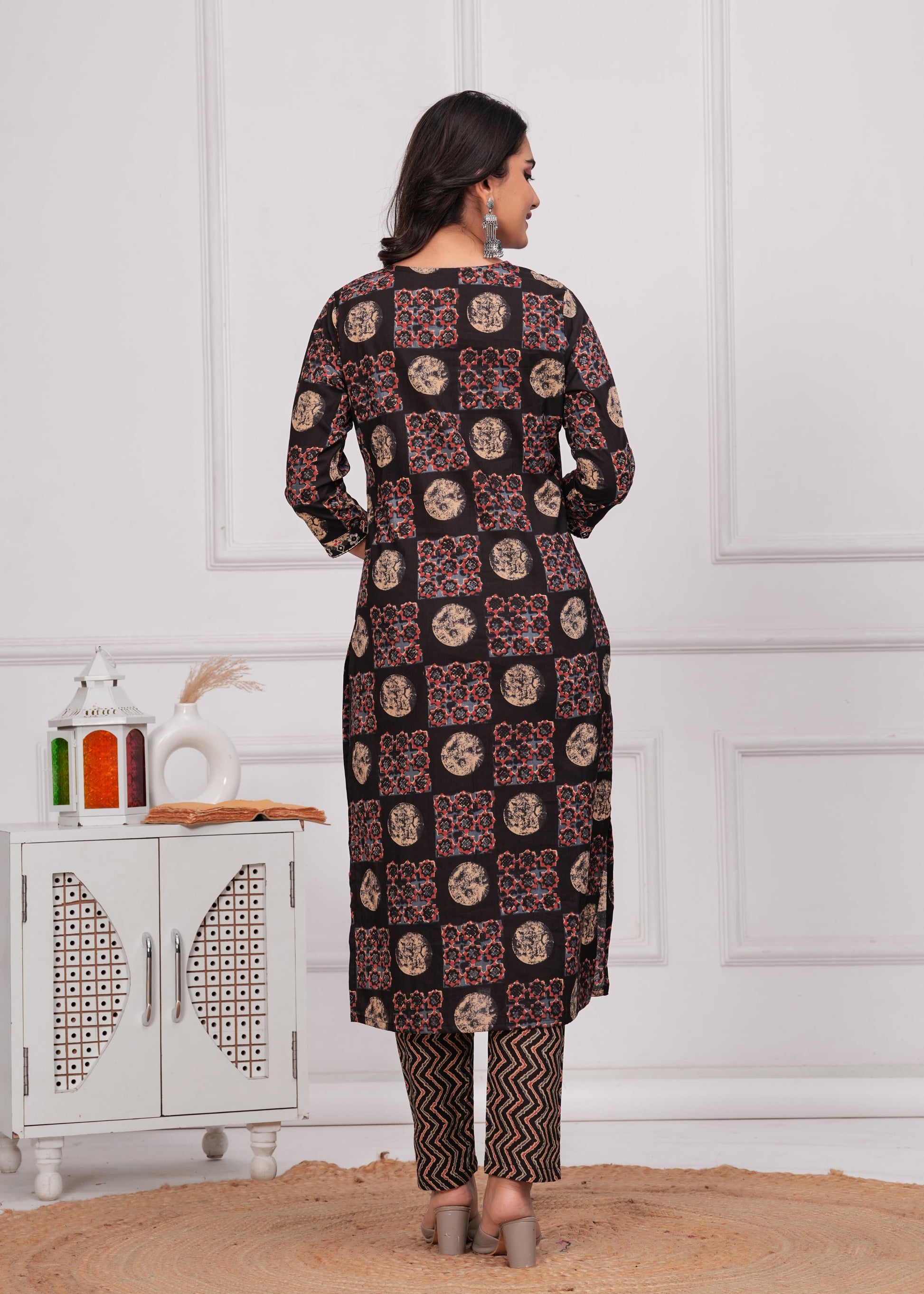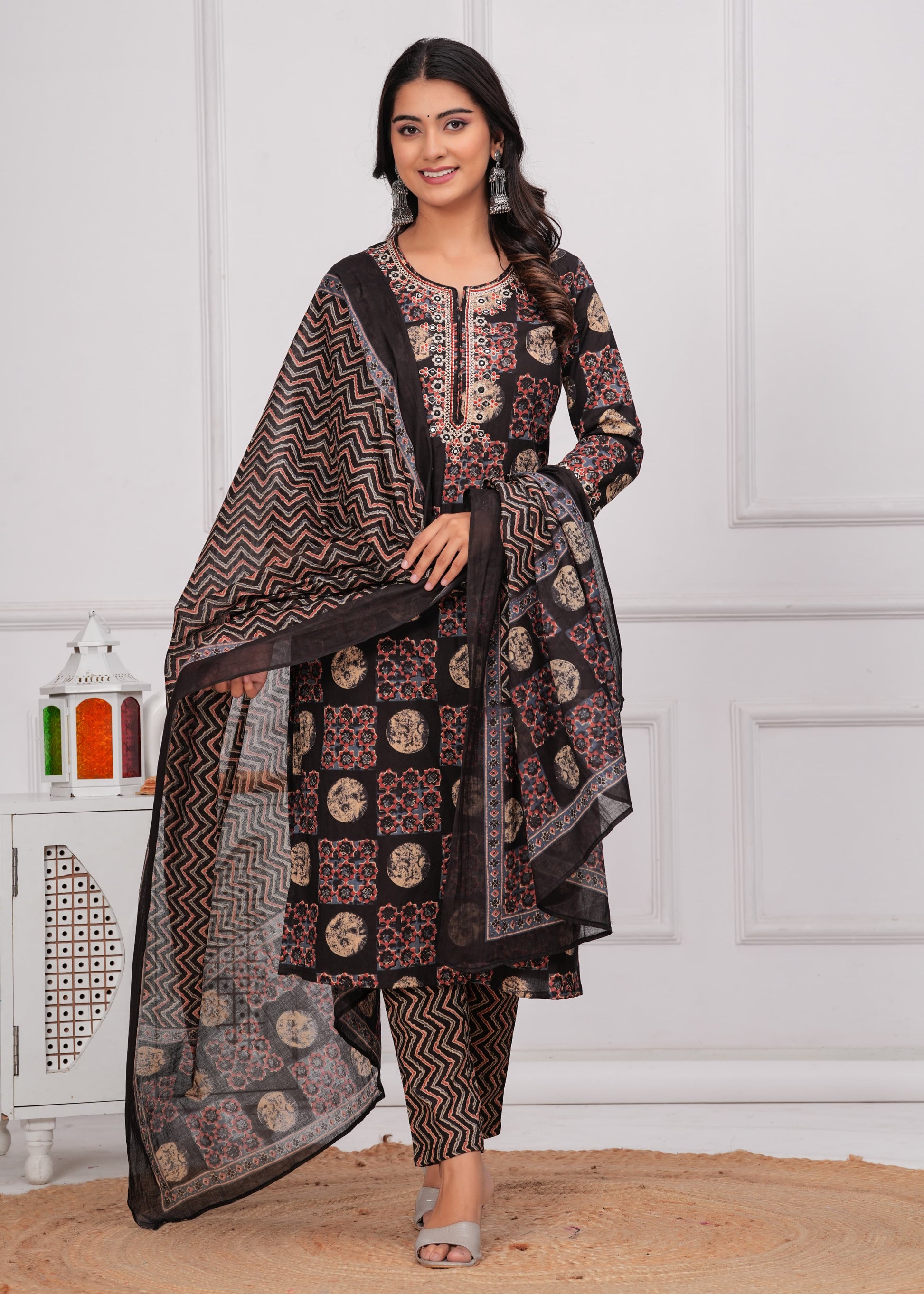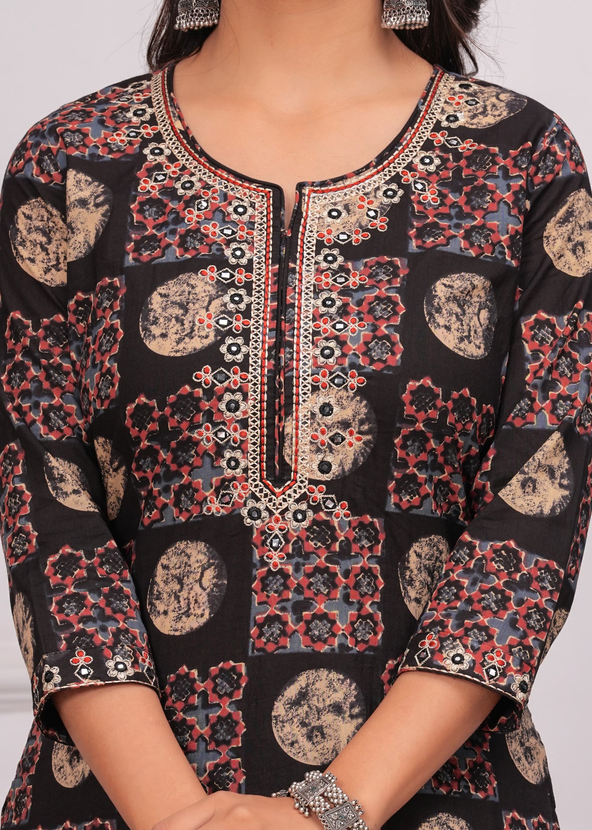 Black & Rust Geometric Print Cotton Kurta Pant Dupatta Set