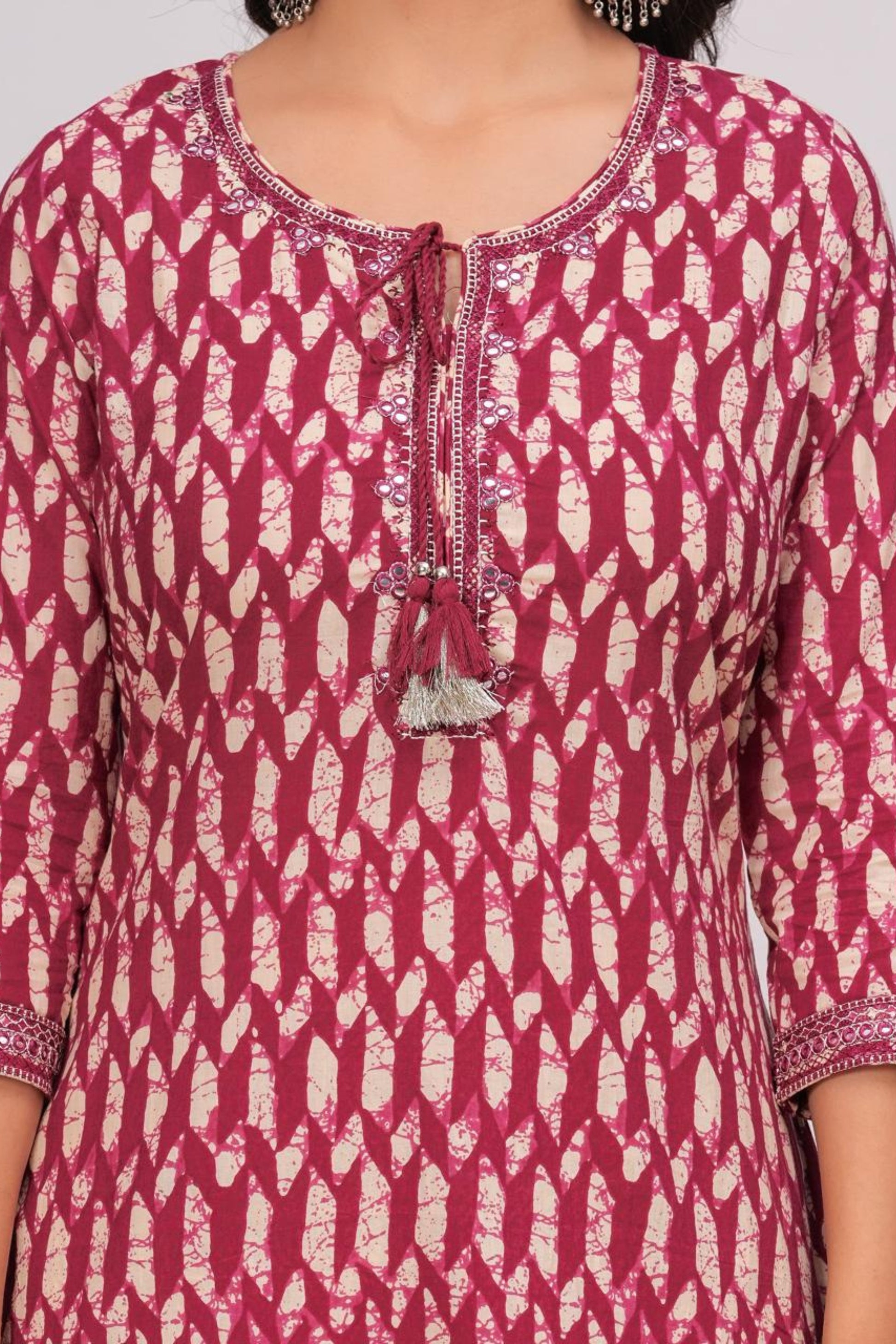 Boho Maroon Kurta Set with Tassel Detailing & Cotton Dupatta