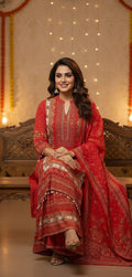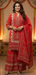 Elegant Scarlet Red Ethnic Suit Set with Sharara & Dupatta