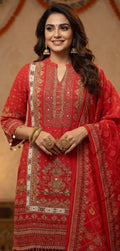 Elevate your festive style with the Elegant Scarlet Red Ethnic Suit Set with Sharara & Dupatta. Crafted in premium muslin fabric, this outfit blends comfort with timeless charm. The vibrant scarlet kurta features intricate prints, paired with a graceful sharara and a matching dupatta for a complete ethnic look. Perfect for weddings, festive gatherings, and family functions, this muslin suit set is lightweight, breathable, and effortlessly stylish. Make a statement at every occasion with the Elegant Scarlet Red Ethnic Suit Set with Sharara & Dupatta – a must-have in your festive wardrobe.