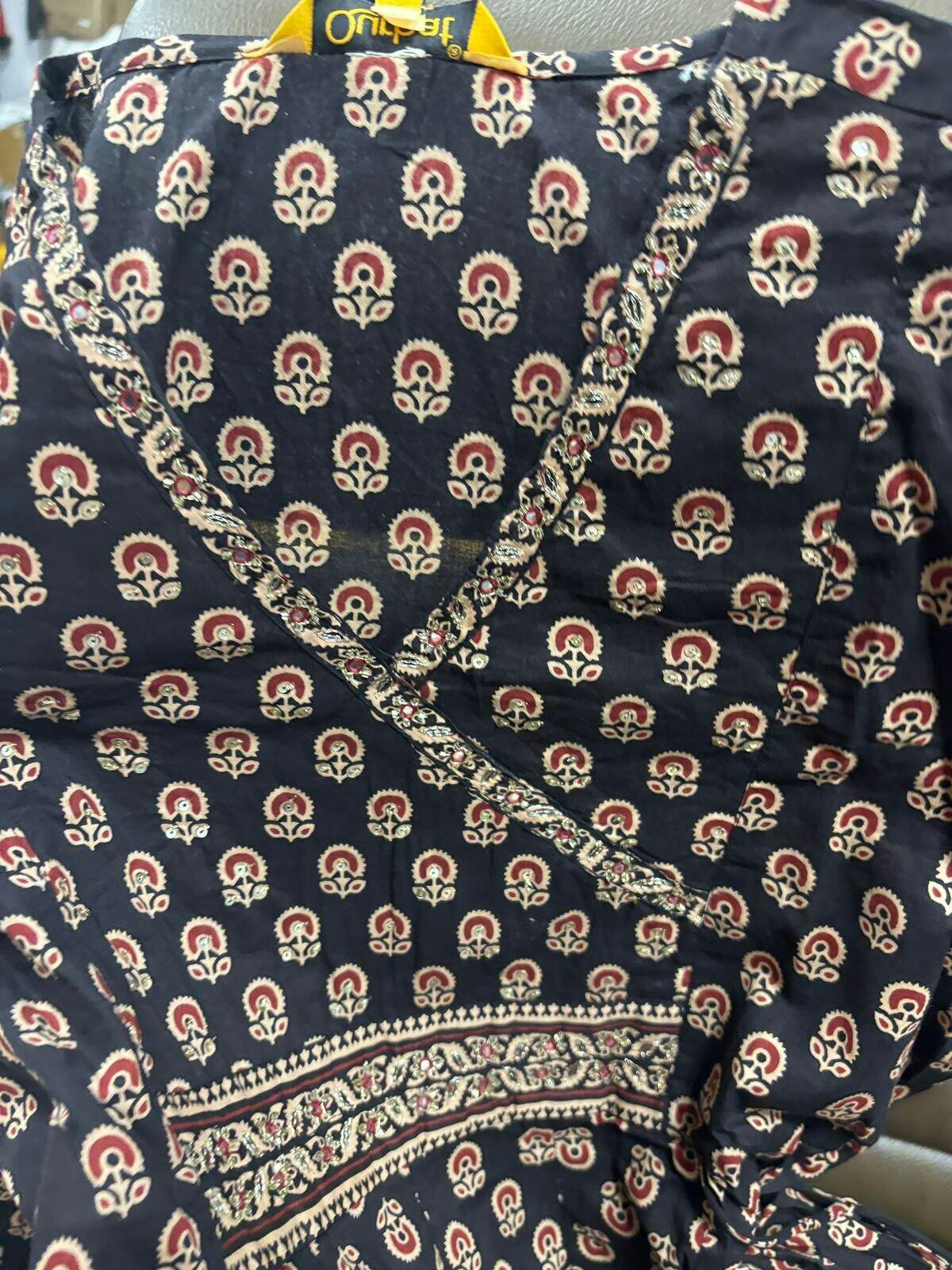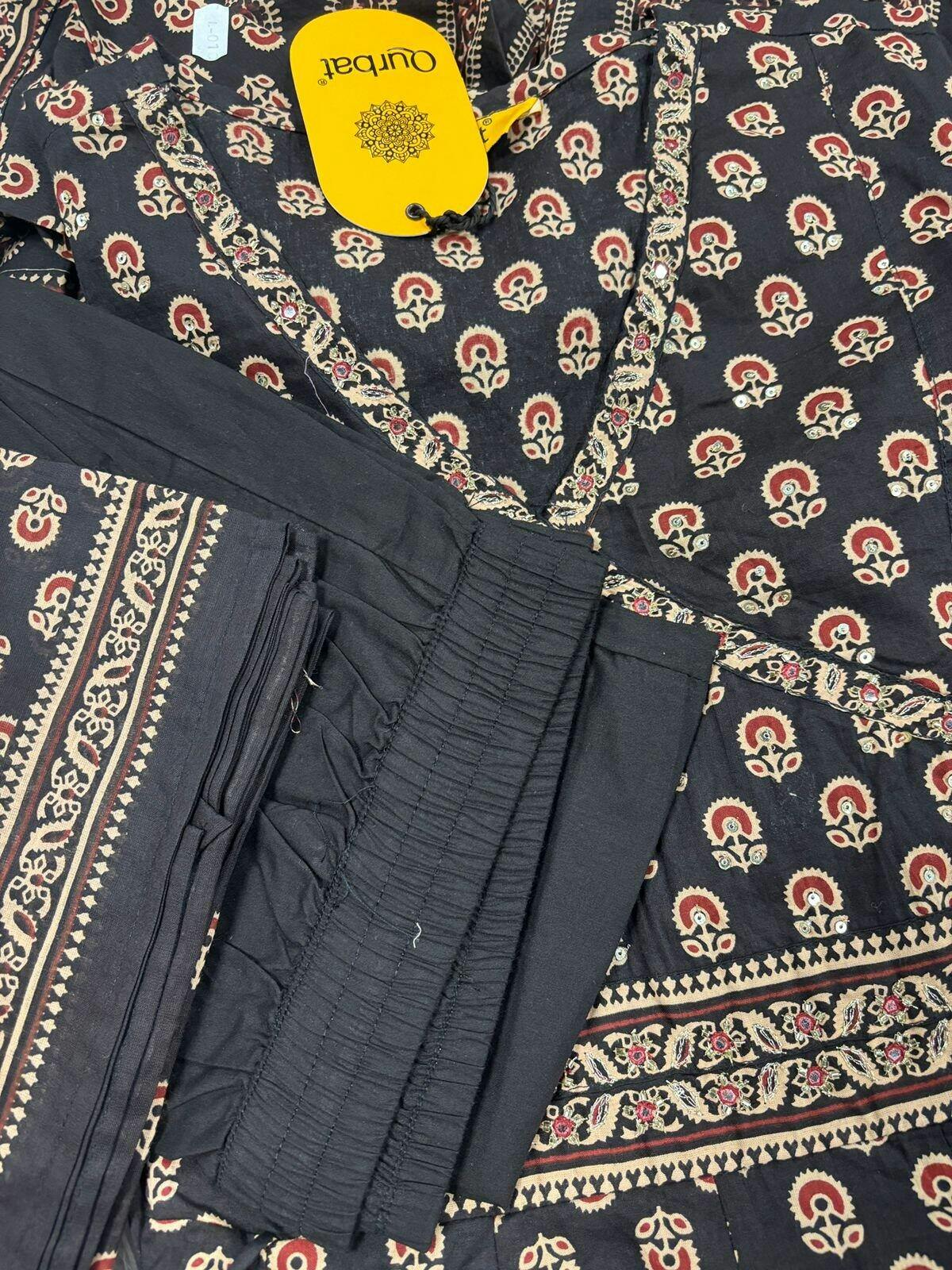 Step into timeless elegance with this Graceful Black Angrakha Style Suit Set with Dupatta. Crafted in premium cotton fabric, the kurta features intricate traditional prints with a flattering Angrakha cut that enhances your silhouette. The matching dupatta adds a regal charm, making it perfect for festive occasions, weddings, or evening gatherings.