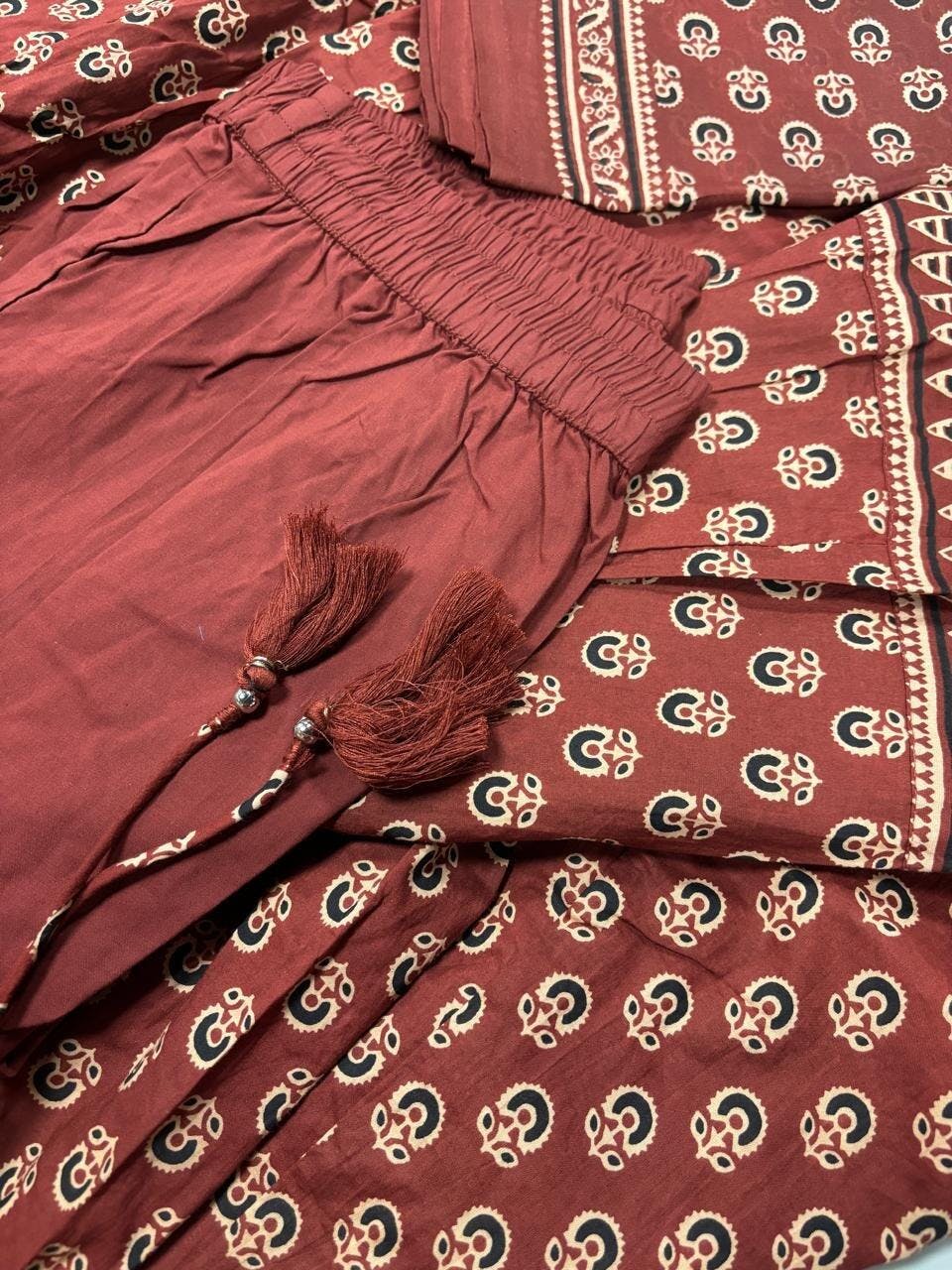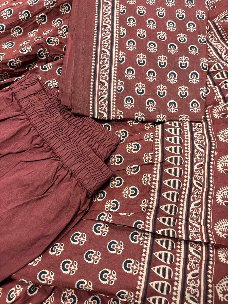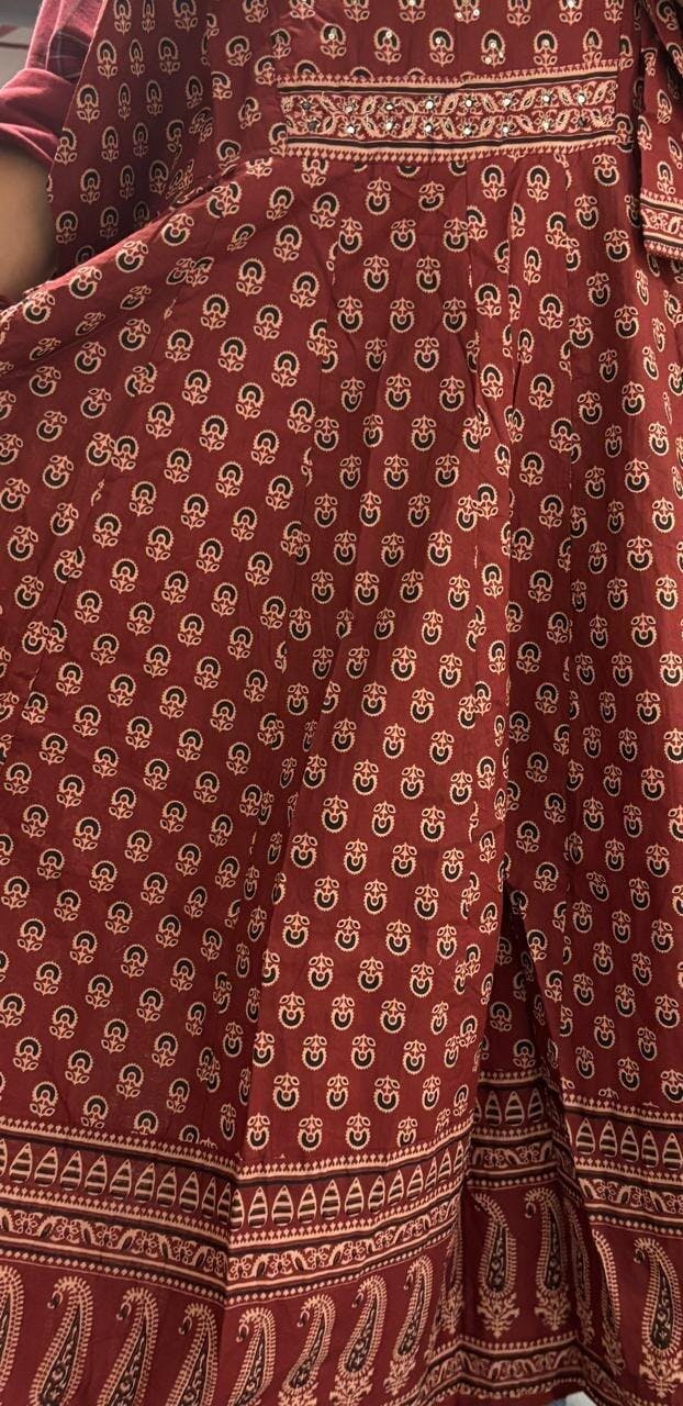 Step into timeless elegance with this Graceful Maroon Angrakha Style Suit Set with Dupatta. Crafted in premium cotton fabric, the kurta features intricate traditional prints with a flattering Angrakha cut that enhances your silhouette. The matching dupatta adds a regal charm, making it perfect for festive occasions, weddings, or evening gatherings.