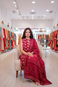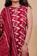 Maroon Ikat Print Sleeveless Kurta Set with Bandhani Dupatta