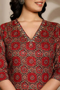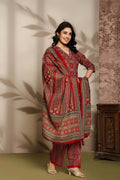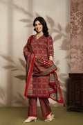 Maroon Printed Cotton 3-Piece Suit Set