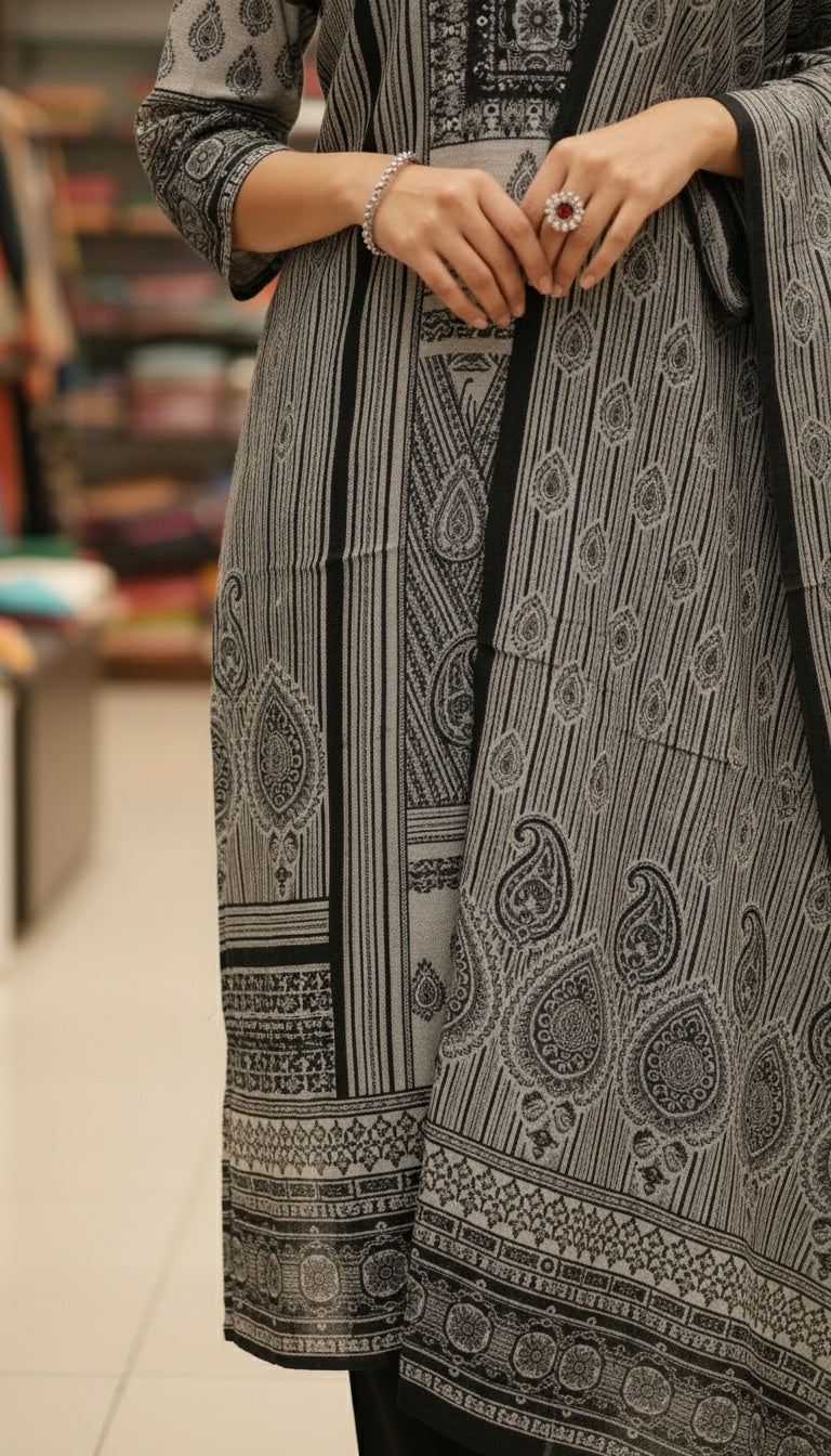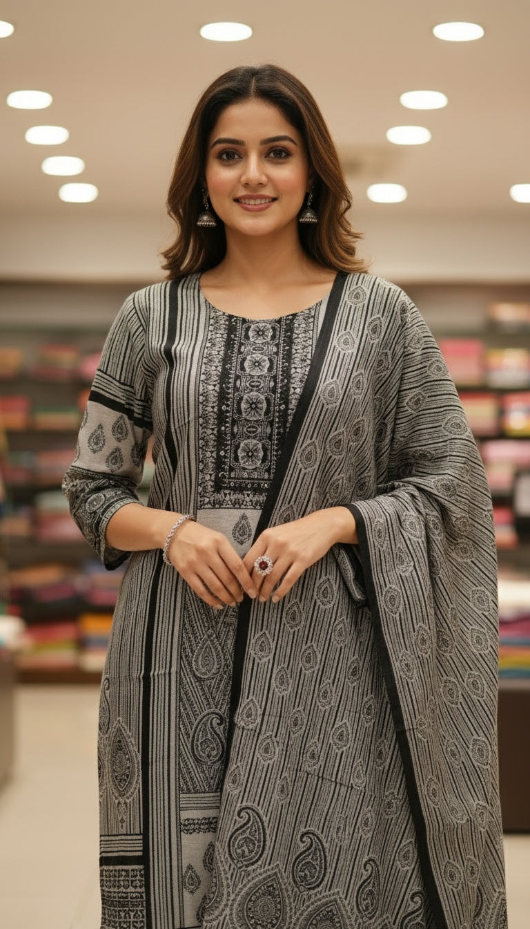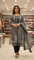 Monochrome Black & Grey Printed Suit Set with Dupatta