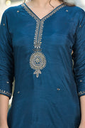 Navy Blue Ethnic Suit Set with Exquisite Golden Zari Embroidery