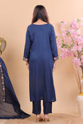 Bring timeless elegance to your wardrobe with our Navy Blue Floral Embroidered Kurta Set with Dupatta, a perfect mix of comfort and sophistication. Crafted in premium cotton fabric, this 3-piece set is breathable, lightweight, and ideal for all-day wear. The navy blue kurta is beautifully adorned with delicate floral embroidery around the neckline, sleeve borders, and hem, adding a graceful charm to its flowy silhouette. Designed with soft gathers at the yoke, it ensures a flattering fit for every body type. Paired with matching straight-fit pants, the outfit maintains a refined balance of tradition and modernity. Completing the ensemble is a coordinated dupatta with elegant embroidered borders, making it a versatile choice for festive occasions, family gatherings, office wear, or casual outings.