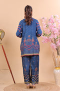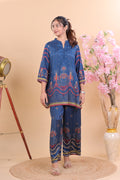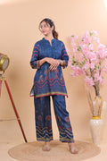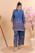 Navy Blue Muslin Co-ord Set with Intricate Floral & Geometric Print