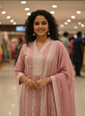 Stay effortlessly stylish with the Pastel Peach tread Embroidered Cotton Suit Set with Dupatta. Designed in breathable cotton fabric, this elegant outfit features delicate embroidery on a soft pastel peach kurta, paired with straight-fit pants and a matching dupatta for a graceful ethnic look. The lightweight cotton ensures all-day comfort, making it perfect for festive gatherings, office wear, or casual family functions. The soothing pastel peach shade adds freshness, while the intricate embroidery brings sophistication to your wardrobe. The Pastel Peach Embroidered Cotton Suit Set with Dupatta is the perfect blend of comfort and elegance. Pair it with statement earrings and heels to complete your chic ethnic style.