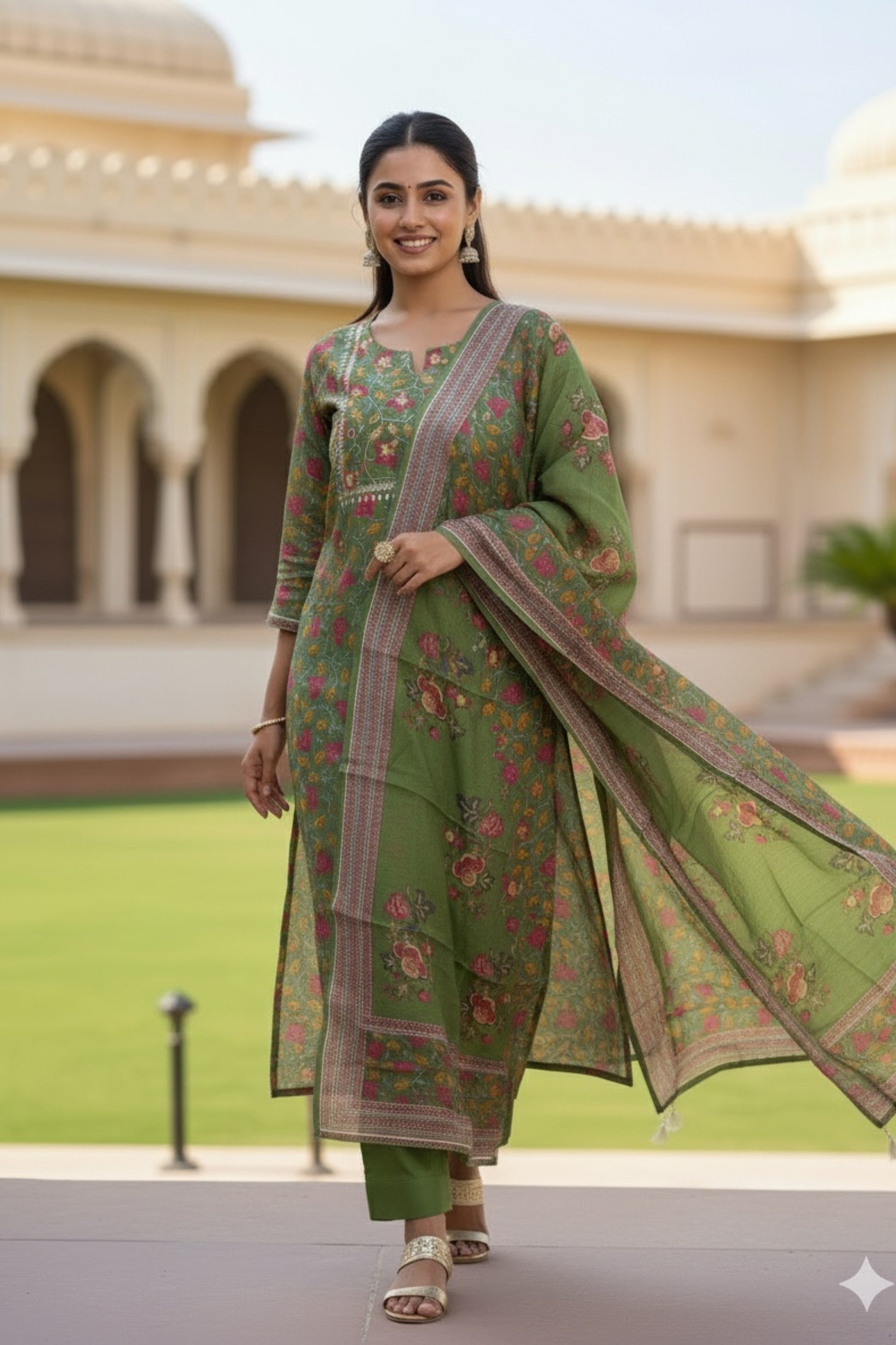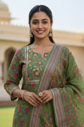 Premium Green Chanderi Ethnic Suit Set with Printed Dupatta