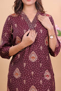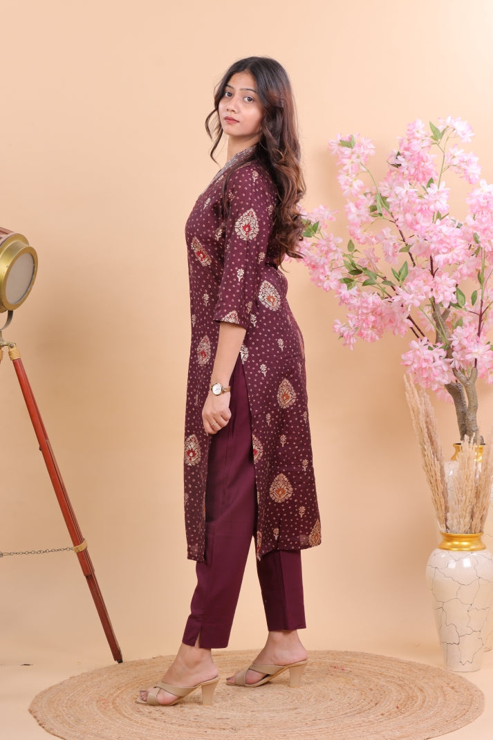 Premium Muslin Kurta & Pant Set in Wine Shade