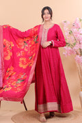 Radiant Pink Silk Anarkali Suit Set with Floral Dupatta & Intricate Embroidery