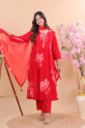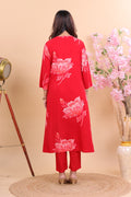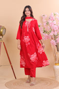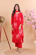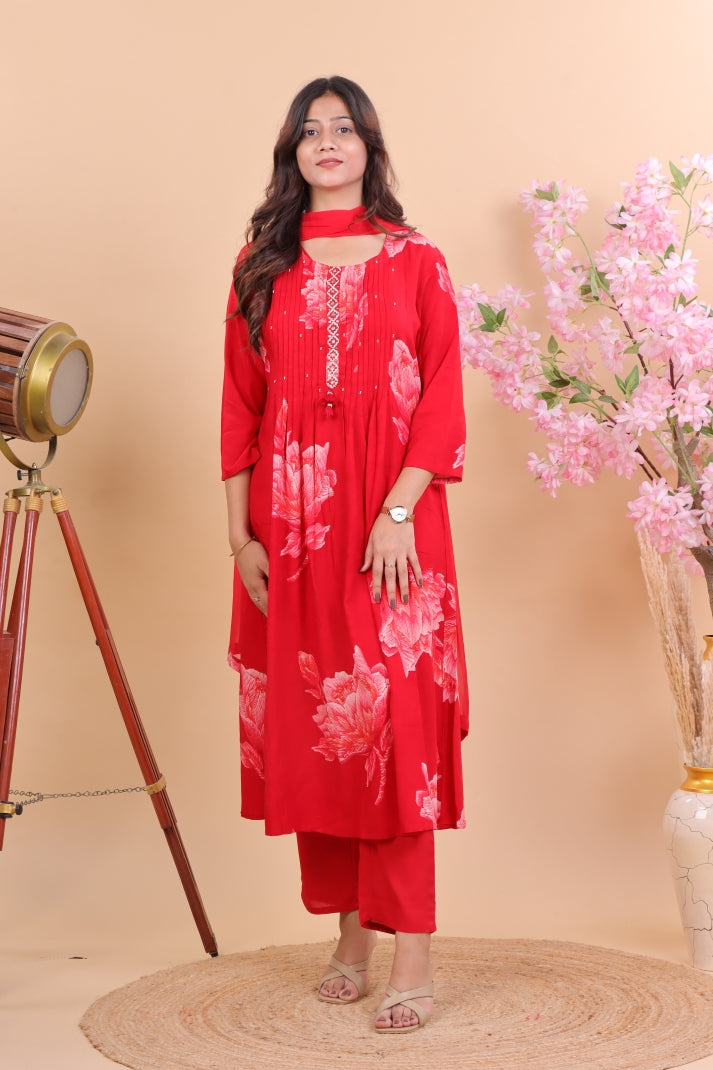 Radiant Red Rayon Floral Printed Suit Set with Dupatta