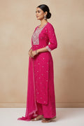Rani Pink Festive Striped Suit Set with Intricate Gota Embroidery