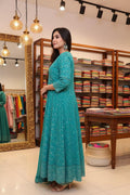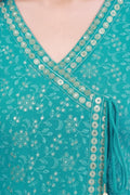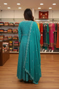 Sea Green Angrakha-Style Embroidered Cut Anarkali Set