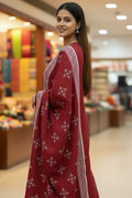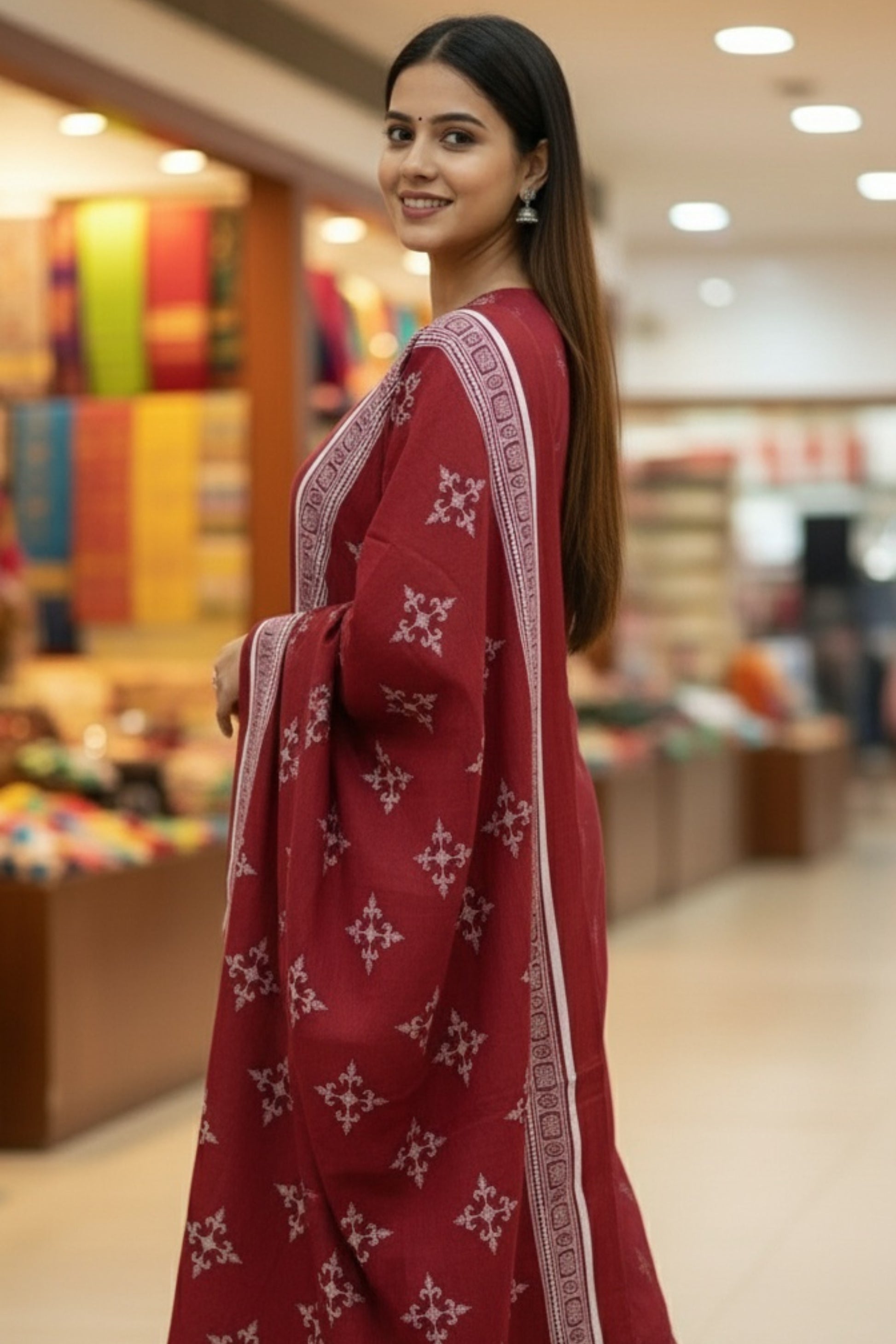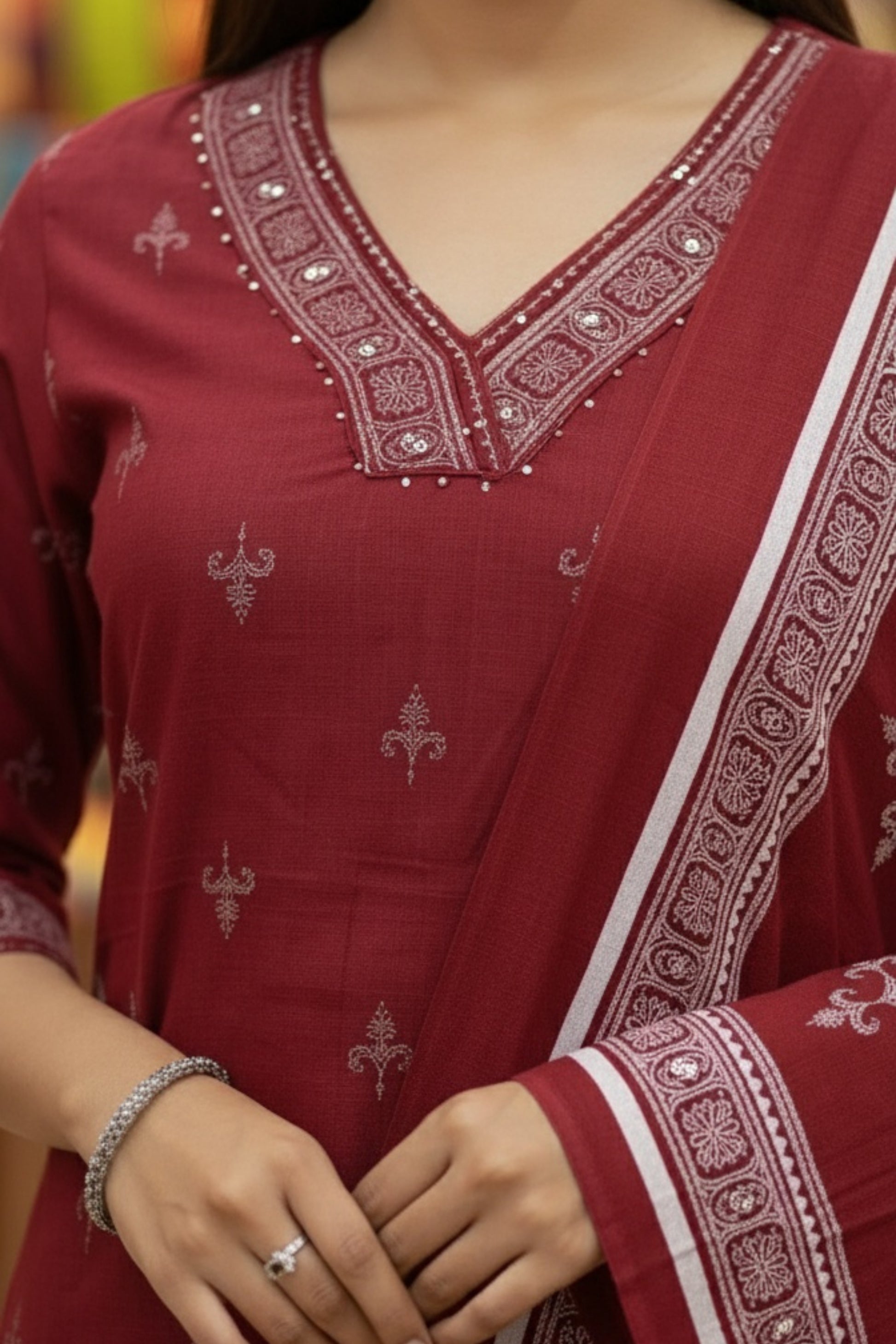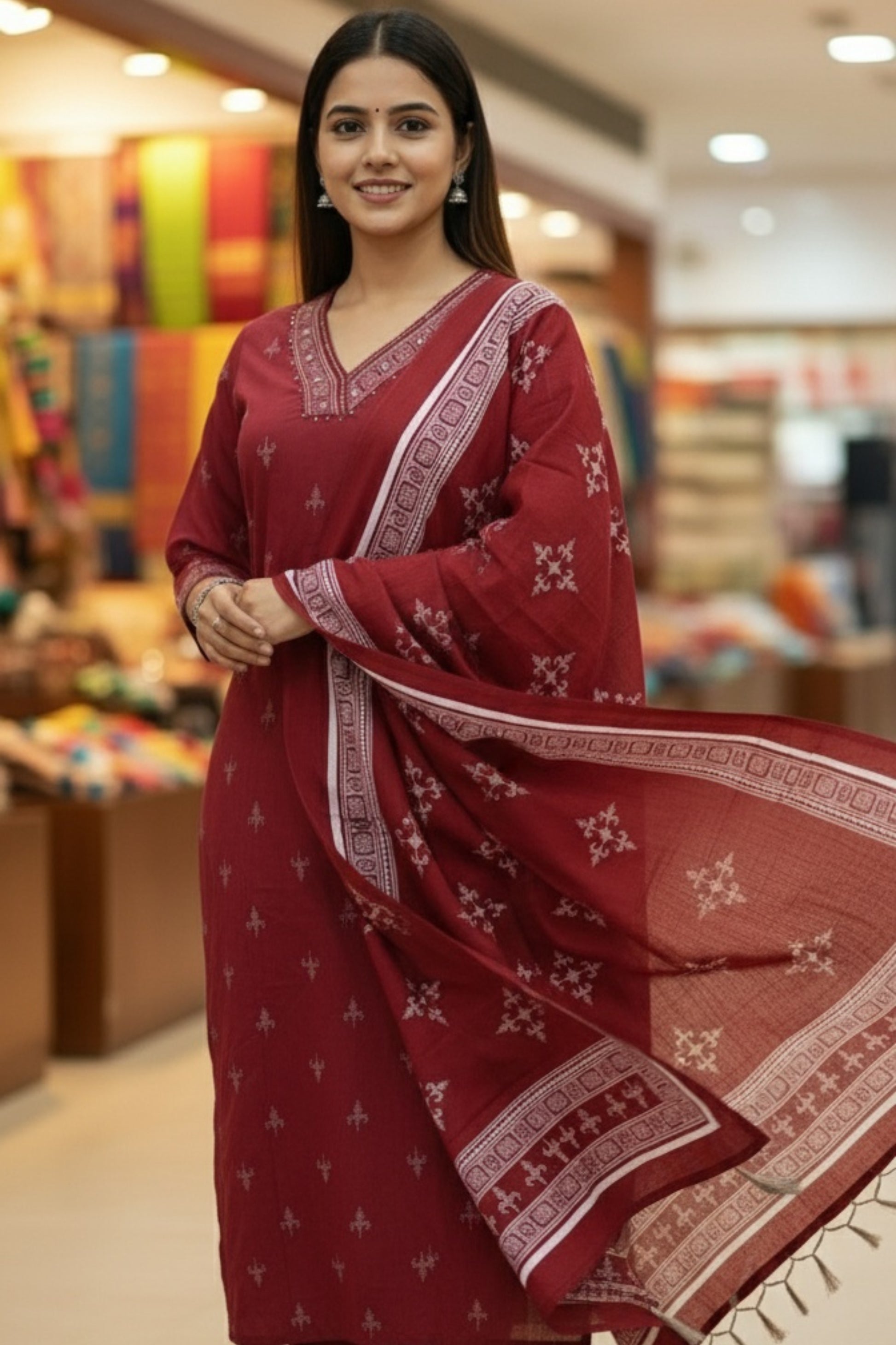 Vintage-Inspired Maroon Kurta Dupatta Set with Minimal Motifs